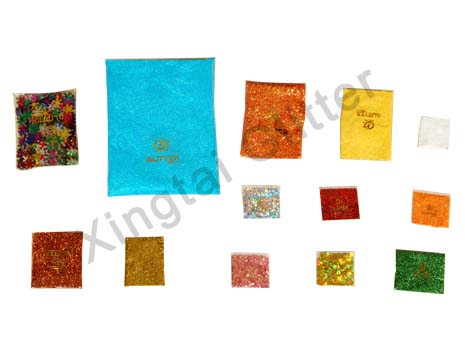 We have specialized in glitter powder and tinsel for more than 16 years. As one of the largest manufacturers in China, we can produce metallic, rainbow, laser and holoshade glitter powder in tetragon and hexagon. And we can make 10tons a day with about one hundred cutting machines. We have the MSDS and EN71 Certificate. And we have about 200 colors.