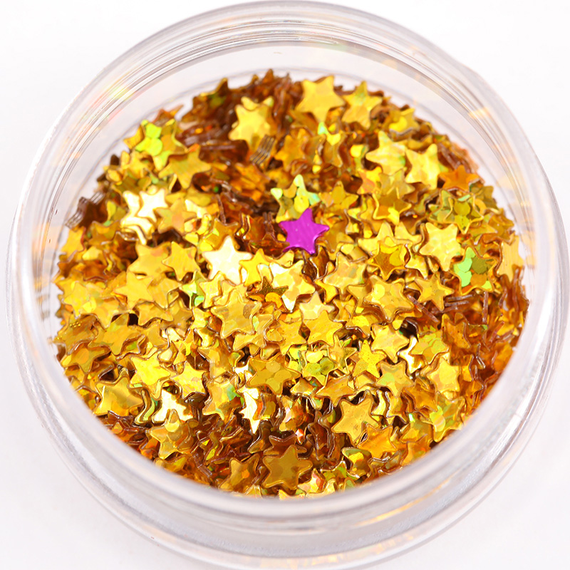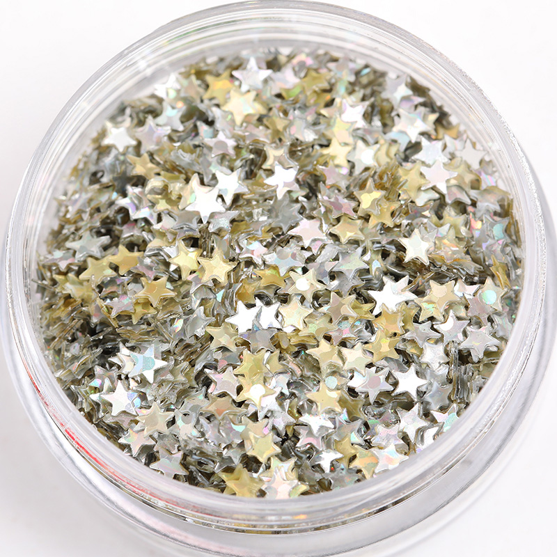 五角星金蔥粉,是一種十分美麗閃爍的妝飾品,提到五角星金蔥粉,或許有許多人不了解是什么,那么換種方法來(lái)講也許就不難理解了,女孩子平時(shí)涂得亮晶晶的指甲油里邊也有五角星金蔥粉,一些亮閃閃的高跟鞋表面也是一層五角星金蔥粉。金蔥粉的用途很廣泛,只要日子中閃爍的的物品都有五角星金蔥粉的存在,圣誕節(jié)的圣誕樹(shù)上那些心愛(ài)的禮物盒,襪子,圣誕帽,星星,閃爍的表面都粘滿了五角星金蔥粉。除了五角星,女同胞們平常用的閃爍的眼影里也金蔥粉,只是用的形狀各異,大小由個(gè)人喜好而選擇,同樣能達(dá)到亮麗美妝的效果。
